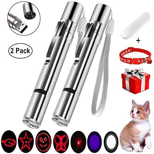 Mesuyoku [2019 Upgraded] Rechargeable Cat Chaser Toy, Interactive Cat Toys Multi Pattern Pet Training Exercise Chaser Tool Cat Light Toy for Cats Dog Toys + A Pet Collar, Silver