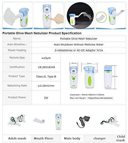 Olive Portable Mini Cool Mist Handheld Mesh Household Treatment Machine with US Adaptor for Adults & Kids