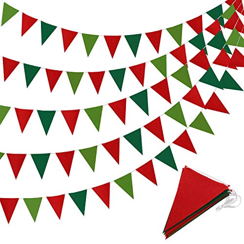 Boao 5 Pieces Christmas Pennant Banner Triangle Bunting Flag Banners Red and Green Garland Pennant Banner for New Year Christmas Party Celebrations Hanging Decorations, 41 Feet