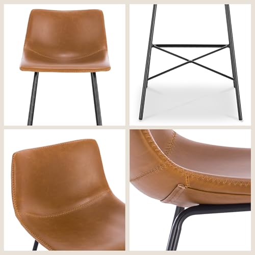 • POLY & BARK Paxton Leather Counter Stools 24 Inches – Set of 2 - Counter Height Bar Stools with Back – Modern Barstools for Kitchen Island or Counters – Faux Leather & Matte Black Steel Base – Tan