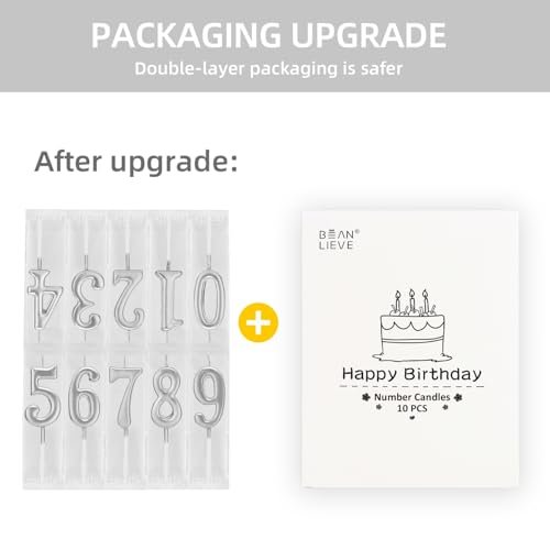 • Beanlieve 10-Pieces Numeral Birthday Candles - Cake Numeral Candles Number 0-9 Glitter Cake Topper Decoration for Birthday,Wedding Anniversary,Party Celebration (Silver)