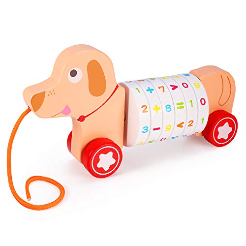 • Voamuw Puppy Wooden Push and Pull Math Toy for Preschool Kids Toddler Educational Toy (Great Gift for Girls and Boys - Best for 1, 2, and 3,4 Year Olds)
