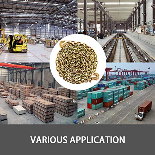 • BestEquip 2 Pack Grade 70 Chain 3/8Inchx19.7ft (10mmx6m) Heavy Duty Chain with Safety Grab Hooks Logging Chain Safe Working Load for Transporting Towing Tie Down Binding Equipment