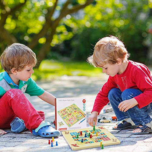 LESONG Maze Magnetic Puzzle Toy for Kids, STEM Toy Developmental Activity Encourages Fine Motor Skills, 2 in1 Board Game-Puzzle with Magnetic Ball and Ludo Game for Toddler, Car and Plane Best Travel Games