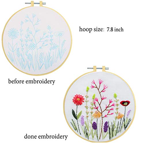 • Nuberlic 3 Sets Embroidery Kit for Adults Cross Stitch Starter Kit Include Craft Stamped 3 Embroidery Cloth with Floral Pattern, 3 Embroidery Hoops, Threads and Needles