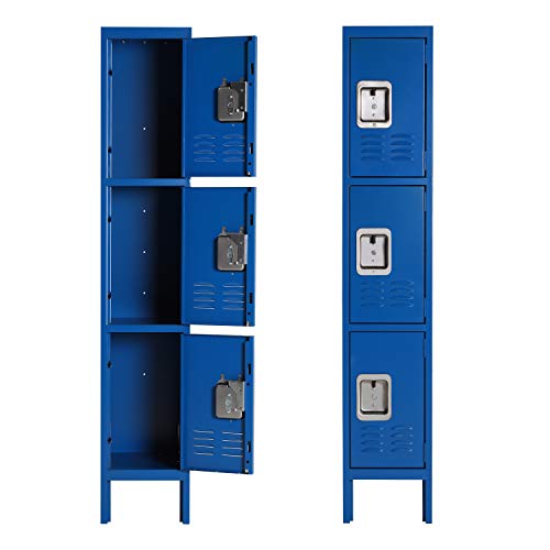 INTERGREAT Metal Locker for School Office Gym Metal Storage Locker Cabinet for Employees Students Steel Locker Triple Tier with 3 Door Blue, 1#blue