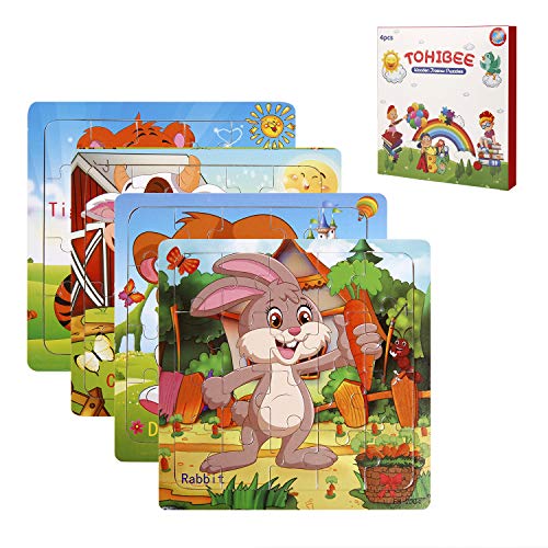 Tohibee Toddler puzzles Wooden Jigsaw Puzzles for Toddlers 1 2 3 Years Old 20 Piece Animals Colorful Wooden Puzzles for Toddler Children Learning Educational Toddler Toys for Boys and Girls (4 Puzzles)