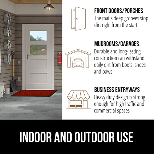 GORILLA GRIP Traffic Guard Door Mat, Heavy Duty Welcome Mats, Commercial Office Space Doormat, Waterproof, Fade Resistant, Strong Rubber Backing, Low Profile, Shoe and Boot Scraper, 35x23, Red, 35" x 23" (Pack of 1)