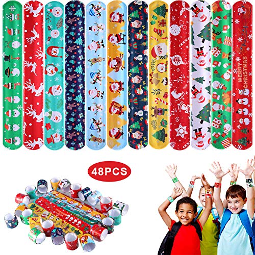 • ThinkMax Christmas Slap Bracelets Party Favors Pack Colorful Retro Slap Bands for Christmas Gift and Classroom Exchange