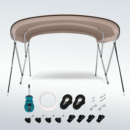KING BIRD 3-4 Bow Bimini Boat Top Cover Sun Shade Boat Canopy Waterproof 1 Inch Stainless Aluminum Frame 46" Height with Rear Support Poles and Storage Boot 6 Colors -5 Sizes, Beige, 3 Bow 6'L x 46"H x 67"-72"W