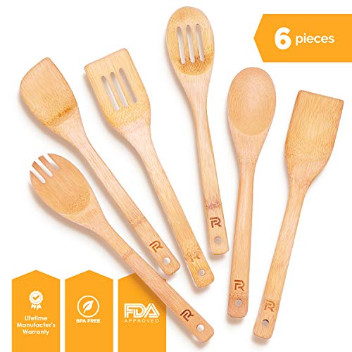 • Riveira Bamboo Cooking Spoons 6-Piece – Wooden Cooking Utensils Set with Wooden Spoons for Cooking & Spatulas Wooden Utensil Sets – Premium Kitchen Utensils Set – Durable First Apartment Essentials