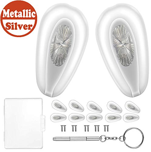 • FSACLE Eyeglass Nose Pads,Upgraded Metal and Soft Silicone Air Chamber Eyeglasses Nose Pads,5 Pairs of Glasses Nose Pad Set with Repair Kit Screws and Micro Screwdriver(0.6 inch) (Silver Silicone)