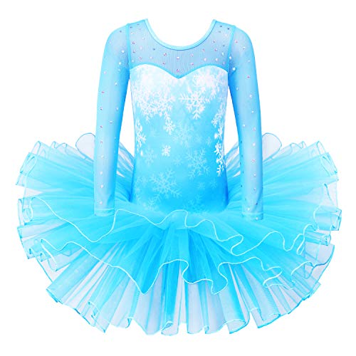 • BAOHULU Girls Leotards Ballet Dance Skirted Tutu Dress Long Sleeve Sequins Dancewear B222_SnowflakeBlue_L
