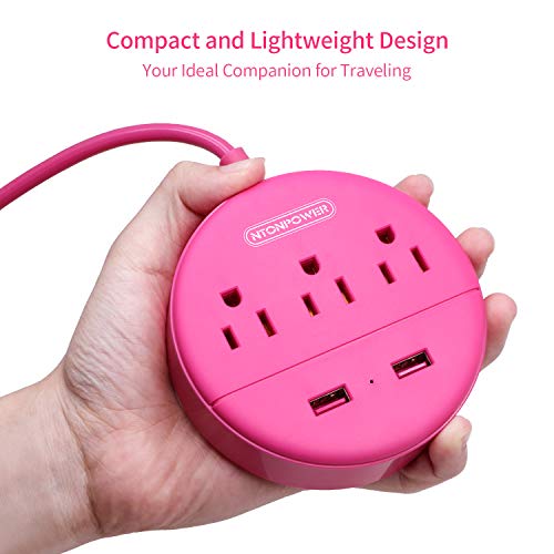 • Power Strip with USB - NTONPOWER Travel Power Strip Flat Plug, 10ft Extra Long Extension Cord, 3 Outlets 2 USB Desktop Charging Station, Wall Mount, Compact for Home, Dorm Room, Office and Cruise Ship