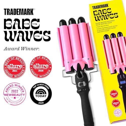 • Trademark Beauty Three Barrel Hair Waver, Curling Iron, 1 Inch, Beach Waves, Quick Heat, Babe Waves Original, Adjustable Temperature Hair Curler - Pink