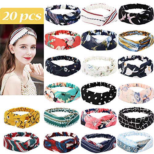 • Boho Headbands for Women, Fascigirl 20 PCS Vintage Floral Bandeau Headbands Elastic Hair Bands Criss Cross Hair Wrap Hair Accessories