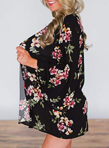 Balasami Women's Floral Cardigan Lightweight Kimono Casual Loose Open Front Cover Up Tops (02Black, M), Medium