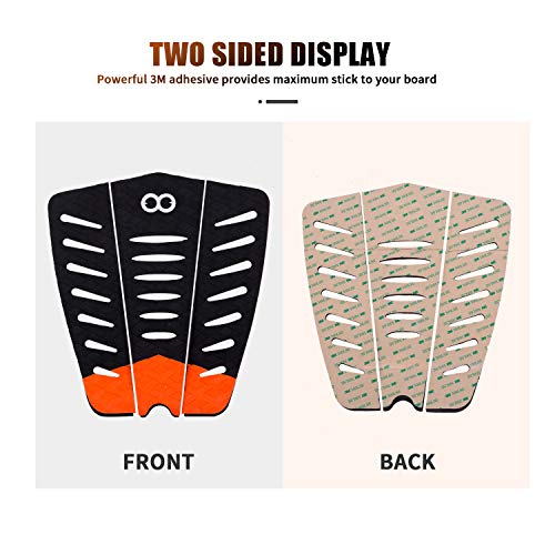 • WOOWAVE Surfboard Traction Pads 3 Piece EVA Surfing Traction Pad Premium with 3M Adhesive and Tail Kicker for Surf Board Skimboard Longboard, Orange