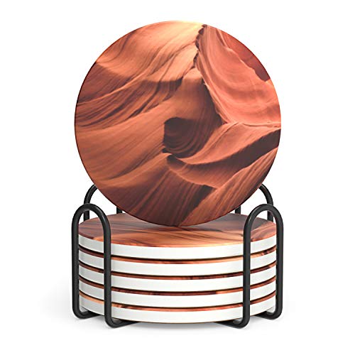 LIFVER Drink coasters with Holder, Marble Style Absorbent Coaster Sets, Avoid Furniture Being Scratched and Soiled, Suitable for Kinds of Cups, 4 Inches, Set of 6, Red