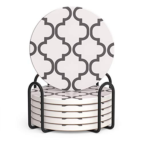 • LIFVER Coasters for Drinks, Set of 6 Absorbent Coasters with Holder, Housewarming Gifts for Home Decor, 4 Inches for Kinds of Cups, Grey-line Style