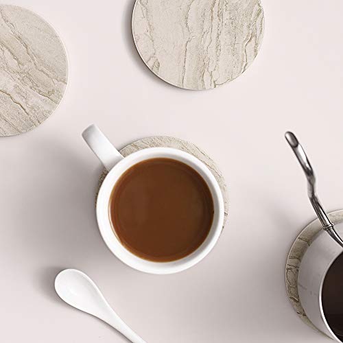 • LIFVER Coasters for Drinks, Set of 6 Absorbent Coasters with Holder, Housewarming Gifts for Home Decor, 4 Inches for Kinds of Cups, Sandstone-Style Coasters