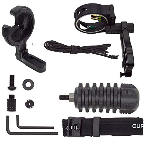 • Gazeer Archery Accessory Combo, 5 Pin Bow Sight with Level and Light, Arrow Rest, Stabilizer, Sling, Peep Sight (Black)