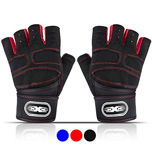 • Fisi Workout Gloves for Men & Women, Gym Weight Lifting Gloves with Wrist Wrap Support, Breathable & Non-Slip, Full Palm Protection, Great for Fitness Exercise, Training (Black&Red, Large)