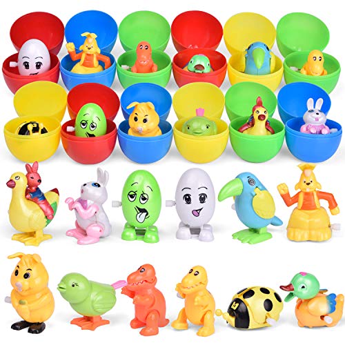 FUN LITTLE TOYS 12 PCs Wind Up Toys Filled Easter Eggs with Assorted Animal Toys, Easter Basket Stuffers for Kids Party Favors