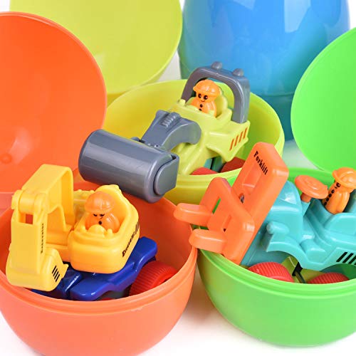 • FUN LITTLE TOYS 12 Pieces Easter Eggs Prefilled with Toy Vehicles, Kids Easter Party Favors, Easter Basket Stuffers, Easter Egg Fillers