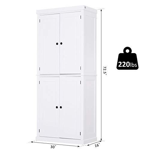 HOMCOM Traditional Farmhouse Freestanding Cupboard Kitchen Pantry with Two Storage Areas, Adjustable Shelving, White