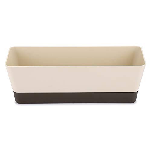 Skelang 2 Pcs Rectangular Plant Pot, 12" Watering Plant Container with Drainage Hole, Window Planter Box with Saucer for Succulents, Flowers, Herbss, Creamy White and Coffee, 12" x 11.2" x 4.3"