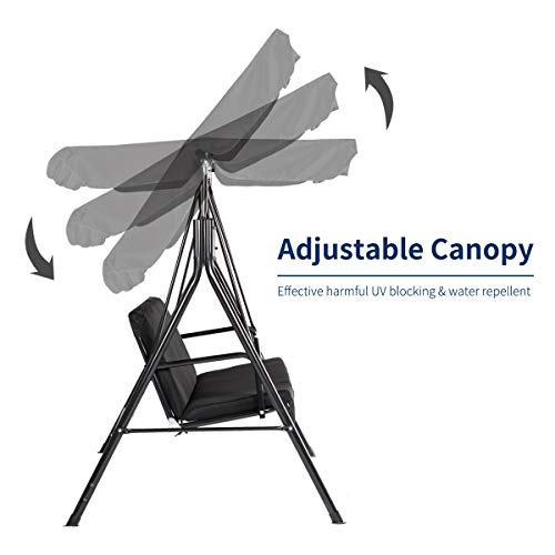 Esright Outdoor Patio Swing Chair, Cnopy Swing with Removable Cushion and Weather Resistant Powder Coated Steel Frame, Suitable for Patio, Garden, Poolside, Balcony, Black