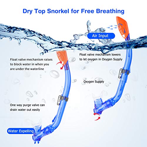 SKL Kids Snorkel Set Dry Top Snorkel Mask Snorkeling Gear Anti-Fog Anti-Leak Scuba Diving Mask and Snorkel Set for Children, Boys, Girls, Youth, Junior Aged 6-15, Blue