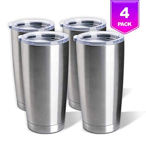 • Stainless Steel Tumblers Bulk 4-Pack 20oz Double Wall Vacuum Insulated by Pixiss | Bulk Cup Coffee Mug with Lid, Travel Mug Works Great for Ice Drink, Hot Beverage | Perfect for Epoxy Glitter Tumblers