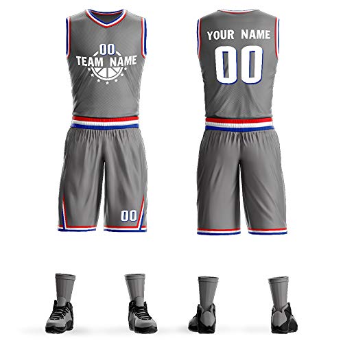 • Grey Custom Men/Youth Basketball Uniforms Team Jersey and Shorts Training Breathable Tank Top Suit(Grey 01,Men-M)
