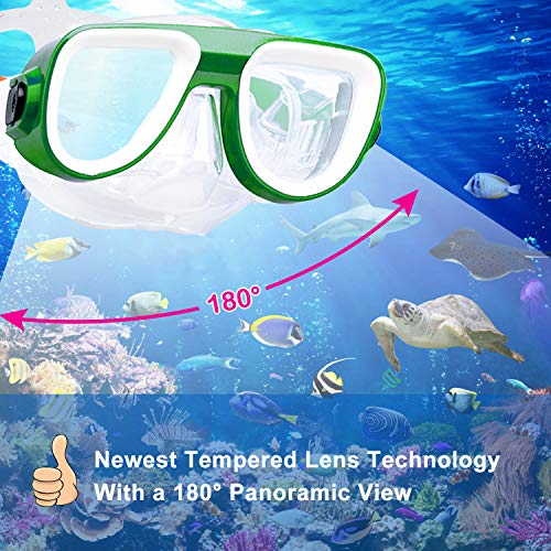 Adicop Kids Snorkel Set Junior Snorkeling Gear Kids Silicone Scuba Diving Snorkeling Glasses Set Semi-Dry Snorkel Equipment for Boys and Girls Age from 4-8 Years Old, Green