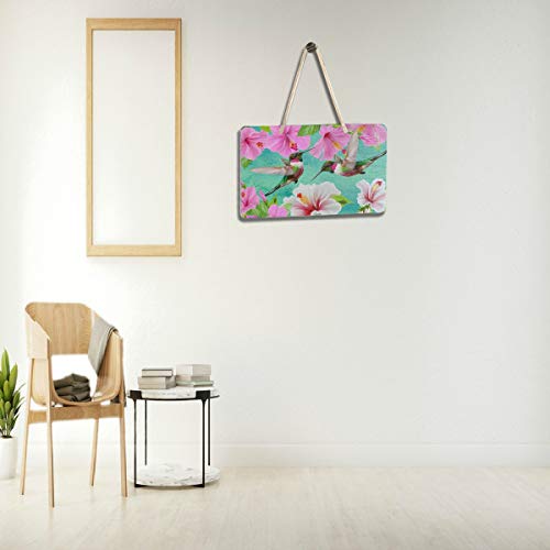 • Vdsrup Pink Hibiscus Hummingbirds Hanging Door Sign Plaque Spring Summer Bird Flowers Wall Sign with Hanging String Decorative Welcome Hanging Sign for Front Porch Home Decor 6x11 inches
