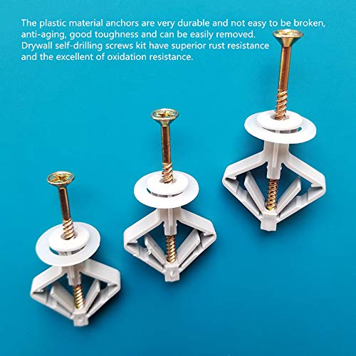 • Runningfish Hollow Wall Anchors with Screws Flat Washers, Drywall Ribbed Anchor kit, Excellent Plastic Self Drilling Hollow Wall Anchor 60 Pieces (#6, 60)