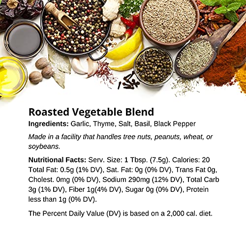 Premium Roasted Vegetable Blend by Spice + Leaf - Vegan Kosher and No Preservatives Spice Blend Used to Make Roasted Vegetables, Steak, Seafood, Fish, Chicken, Quiche or Dip, 2.7 oz, 2.7 Ounce (Pack of 1)