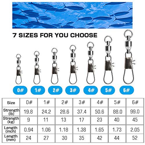 • AMYSPORTS Fishing Swivels with Interlock Snap Ball Bearing Swivels Fishing Snap Swivels Saltwater Freshwater Fishing Tackle Leader Lure Jigs Line Fishing Connector