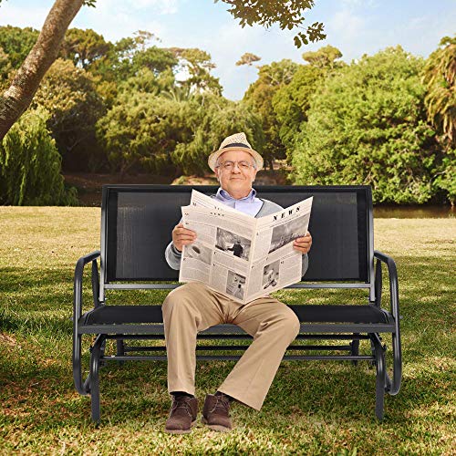 • Outdoor Patio Swing Glider Bench-Loveseat Mesh Seating and Smooth Glide Rocker 2 Person Chair with Weather Resistant Steel Frame for Porch Garden Outside, Gray