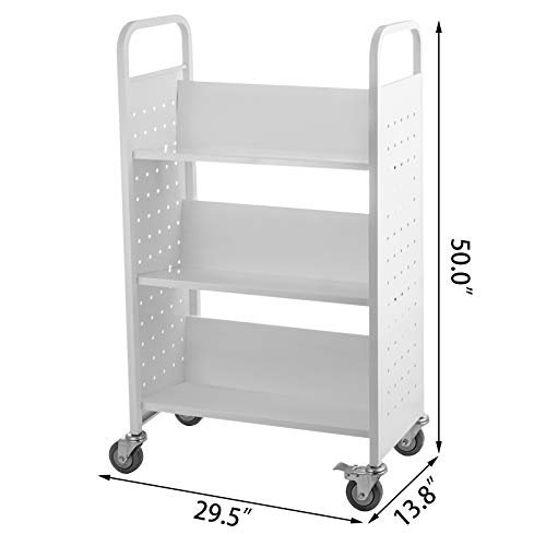 • BestEquip 200LBS Book Cart, Library Cart 30x14x45 Inch Rolling Book Cart, Single Sided V-Shaped Sloped Shelves with 4 Inch Lockable Wheels, for Home Shelves Office and School Book Truck in White