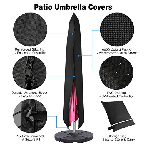 • SEKKVY Outdoor Patio Umbrella Cover, 600D Extra Thickness Waterproof Dustproof Market Parasol Cover with Zipper for 7ft to 11ft Patio Umbrellas