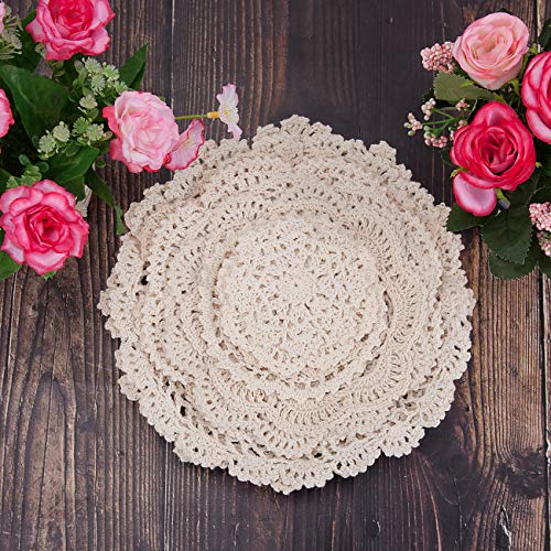 • TOSEEY 14Pcs 100% Cotton Hand Crochet Doilies 3-10 inches Round White Beige Vintage Wedding Tea Party(Beige)