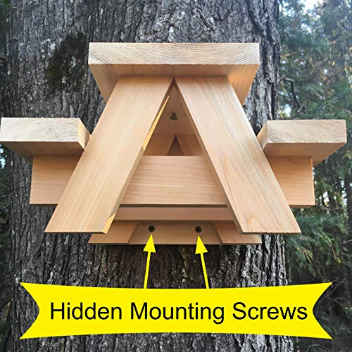 Nutraffect Squirrel Picnic Table Feeder - Large Squirrel Feeders for Outside Corn Cob Holders, Fun Hanging Mini Picnic Table for Squirrels, Wooden Platform Bench Made with Natural Resistant Cedar Wood Tree Mount, Natural Cedar