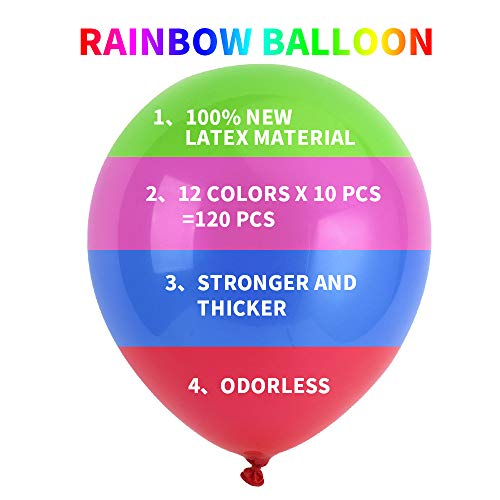 Yeunmu 120 Colorful Latex Balloons, in 12 Assorted Colors, 12-inch Thicken High-end Party Balloons, for Party Decoration or Balloon Arch Decoration, 12 Colors, 12 inch