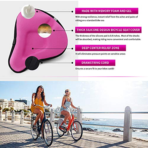 ANZOME Bike Seat Cushion, Extra Soft Wide Gel Bike Seats Cover for Men Women Comfort Fits Bicycle Cushions of Exercise Bikes Spin Stationary Cruiser Bicycles Indoor Cycling(Waterproof Case Included), Pink-gel + Memory Foam Filling