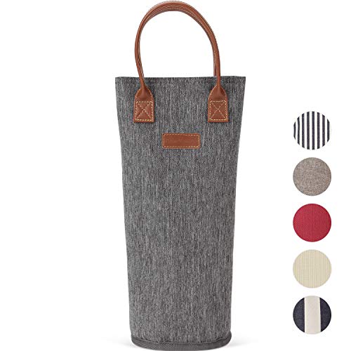 • ZORMY Single Bottle Insulated Wine Tote, 1 Bottle Wine Carrier Bag Padded Wine Cooler Perfect Wine Lover's or Wedding Gift-Grey