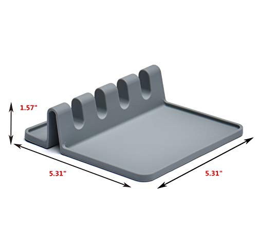 Silicone Multiple Utensil Rest with Drip Pad, Utensil Holder for Stove Top, Kitchen Spoon Rest & Spoon Holder for Brushes Spatulas Ladles Forks, BPA Free Heat Resistant Nice Gift by Jell-Cell (Grey), Gray, 5.3x5.3x1.57 inch