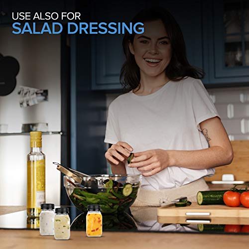 • 4 Ounce Mini Bottles for Mini Fridge, Reusable Juice Containers with Black Caps for Liquids in Kids Lunch Box, Clear Plastic with Lids (12 Pack)